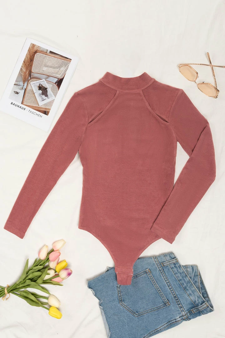 Bring on the night in this Abagail High Neck Cut-out Bodysuit. Designed with flattering cut outs at the front side. Just add ripped pants for a chic look.
