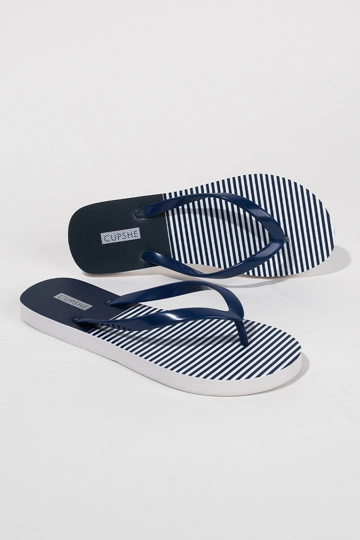 Our Amaretto Stripe Flip Flops is a classic flip-flop sandals make for a summer wardrobe staple; Easy slip-on design with open toe and strapless back; Comfy sole with no heel for easy wear; Simple shoe type and classic colors can meet your basic matching needs,from swimwear to summer clothes.