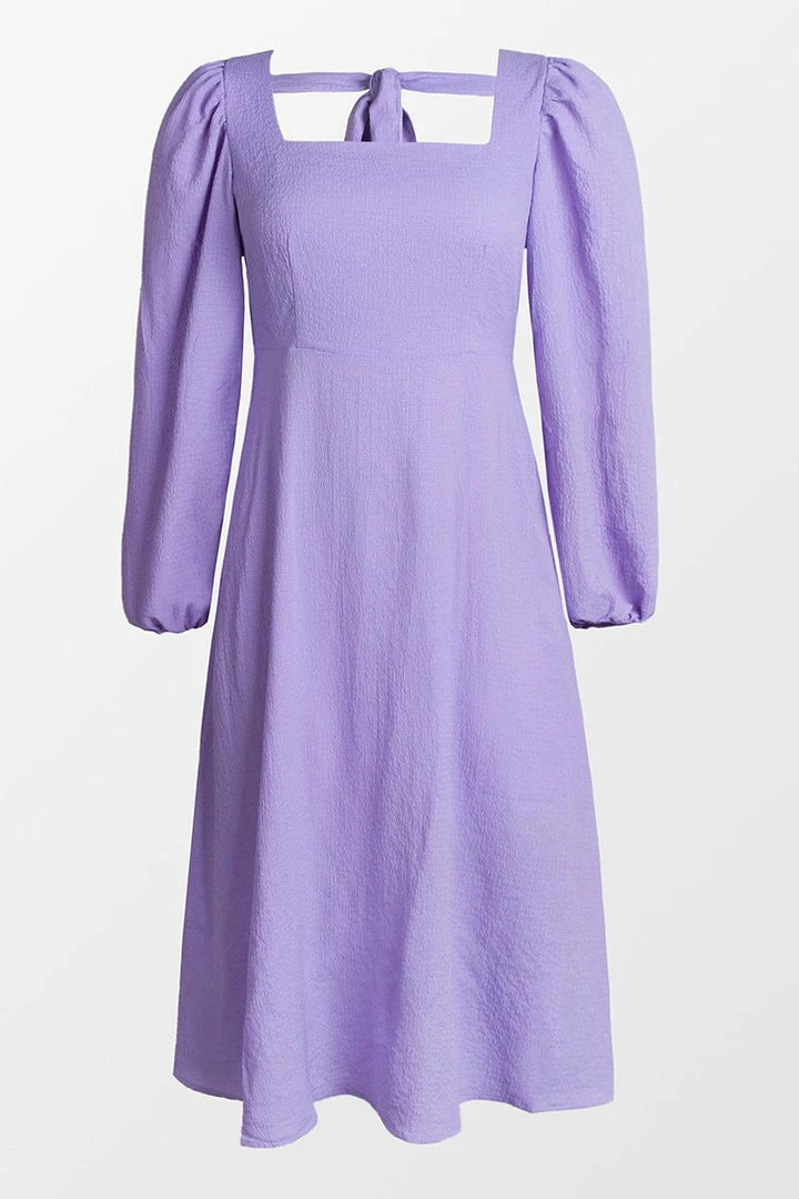 As soft as a mountain breeze and sweet as ice cream, the Angelina Purple Back Tie Tea Length Dress is a total treat in everyday proportions! Puff sleeves and square neckline gives a feeling of retro, tea length is comfortable as well.