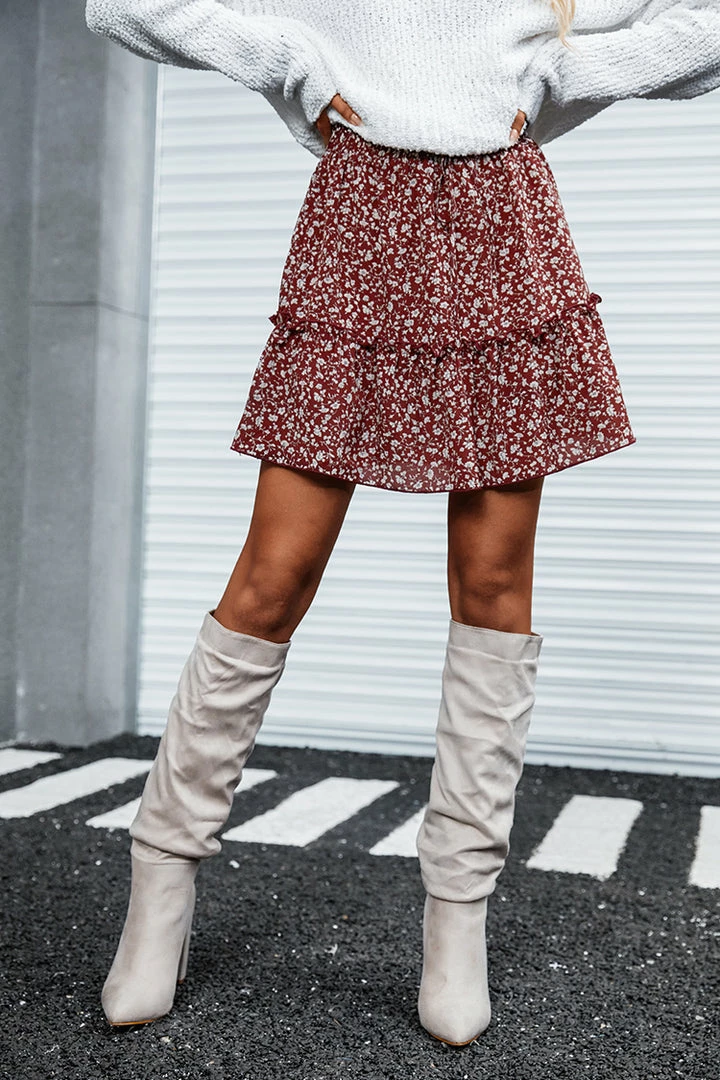 We are loving this woven mini skirt for the new season! Featuring a ditsy floral print, high-rise waist, flounce hem, and A-line silhouette.Β