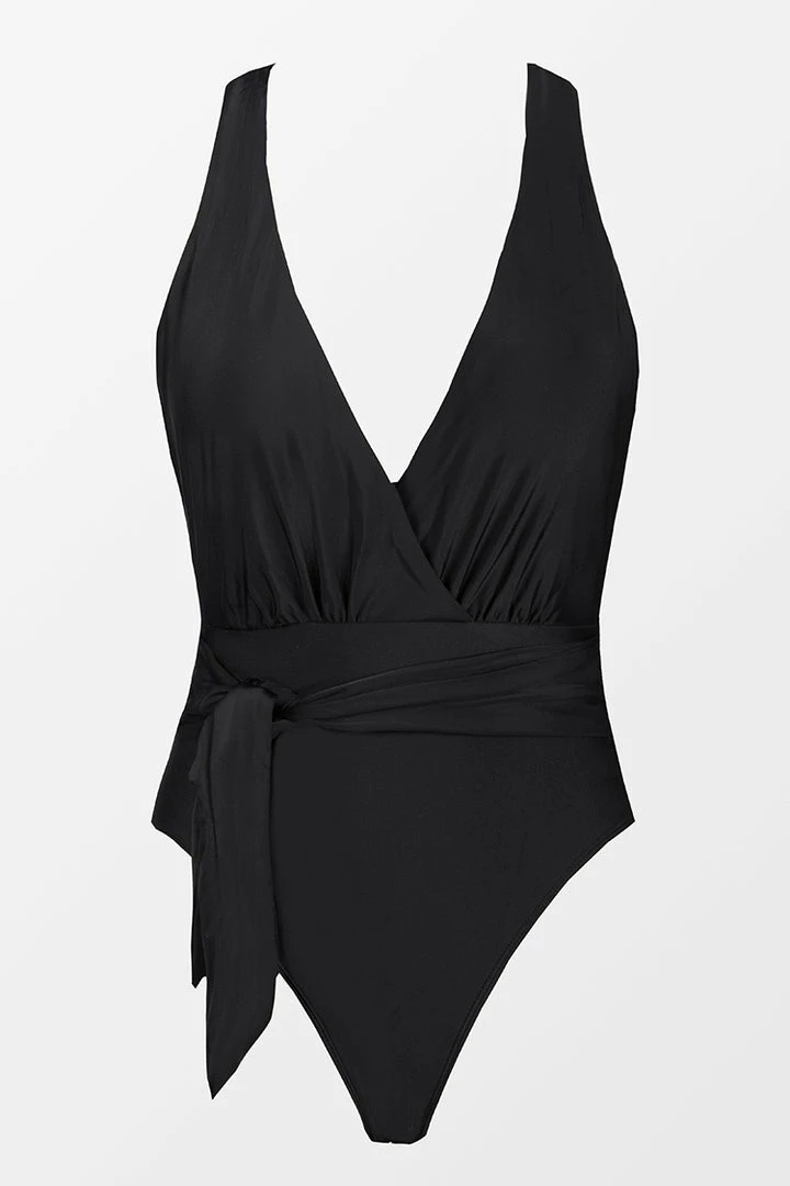 Our Brianne Tie Front Plunging One Piece Swimsuit is the ultra sexy bathing suit you’ve been looking for. Featuring a deep plunge neck and tie front with crisscross back detailing. The perfect one piece to soak up the sun in style.