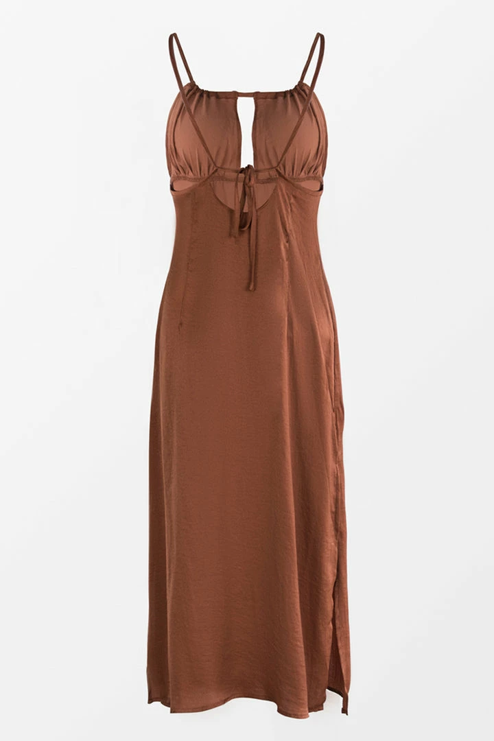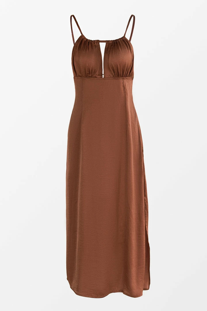 Simple and cute, this Caramel Slip Dress is an easy-to-wear option for all your weekend adventures. Detailed with round neckline design, adjustable straps and slit at the side, it’s just as comfy as it is cute.