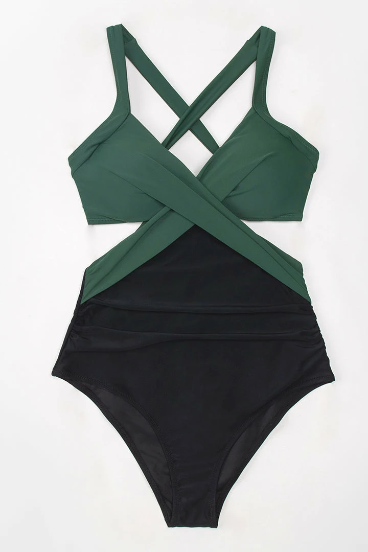 Escape the ordinary in our Carly Colorblock One Piece Swimsuit. Features crisscross lace up back straps with cutout sides. Moulded cup and wide straps for a comfy and flattering fit.