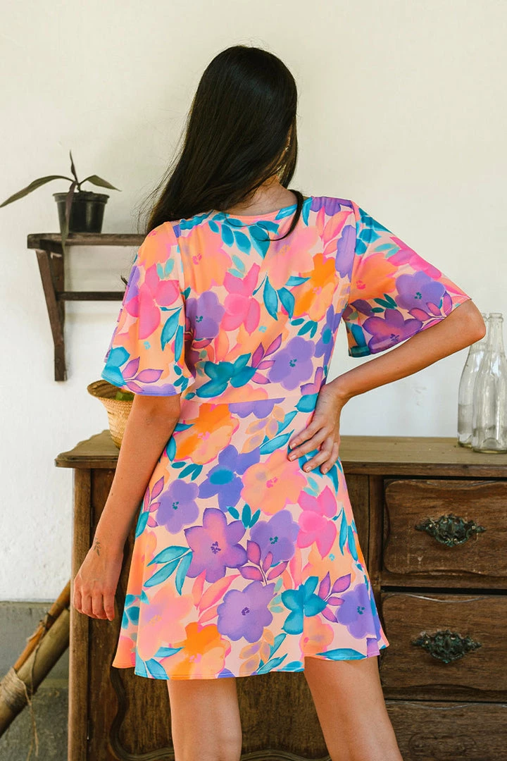 This Christa Plunge Bell Sleeve Fitted Waisted Short A-Shape Dress is designed with a large v-neck, and the color matching is very jumping, which makes people shine. It has a loose skirt and is very comfortable to wear.