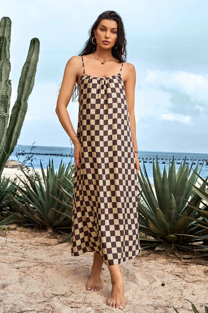 Step out in style with Jazmyne Checkered Backless Slip Dress. Featured with checkered print and blackless detail in a timeless A-shape silhouette. It’s perfect for your next event.