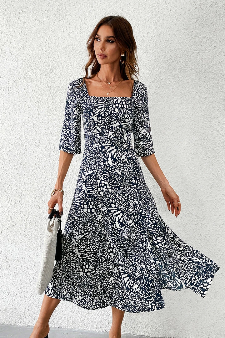 Your weekend outfit is finally sorted with this dress. Featuring a print pattern with long puff sleeve and square neck design, team this with heels and statement earrings that special occasion.