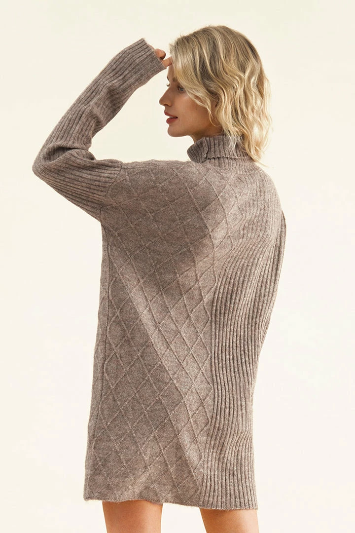 You can never go wrong with our Lourdes High Neck Long Sleeve Sweater Dress. Features a high neckline, textured weave add a touch of fun.