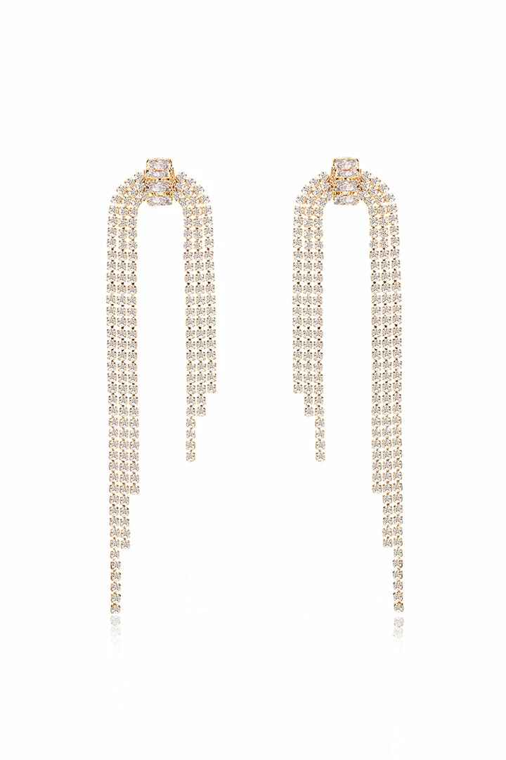 Have all eyes on you in our pair of Spotlight Rhinestone Box Chain Duster Earrings! With its fringed rhinestone box chains and ravishing faux gem accents, youโll command the room.