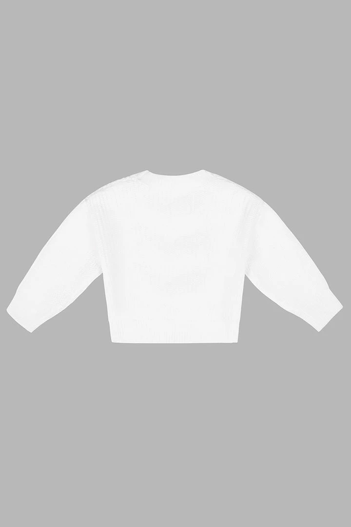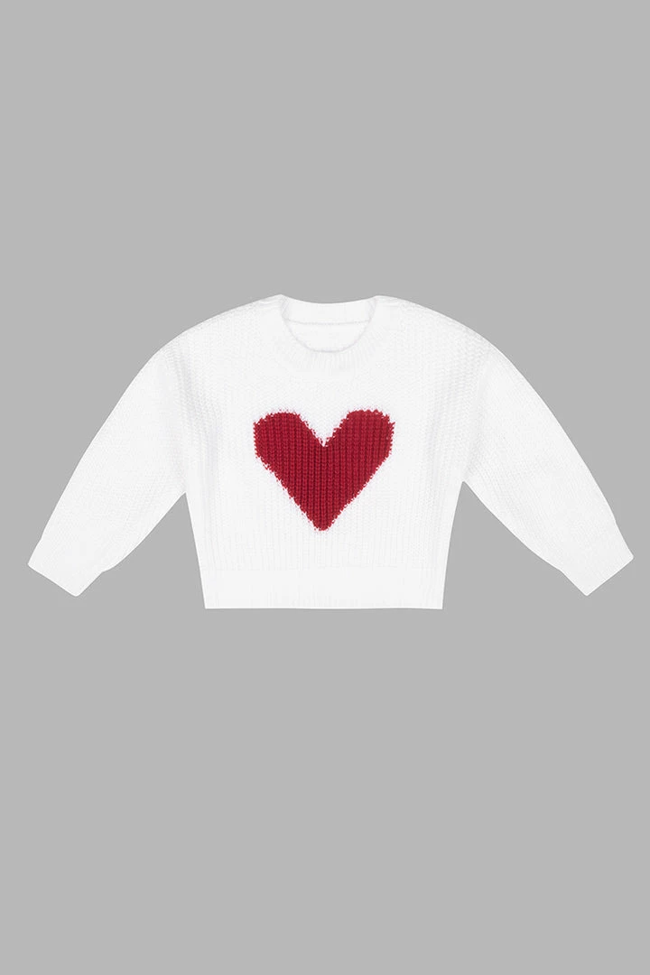 Your little one will look so cute and cozy in our sweater featuring a round neckline, front heart graphic, dropped long sleeves, and ribbed trim.Β