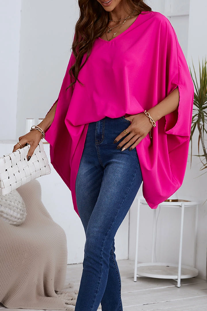 Our V-neck Short Sleeve Loose Waisted Top features short sleeve and V-neck design. It’s a great choice for a date or everyday wear.