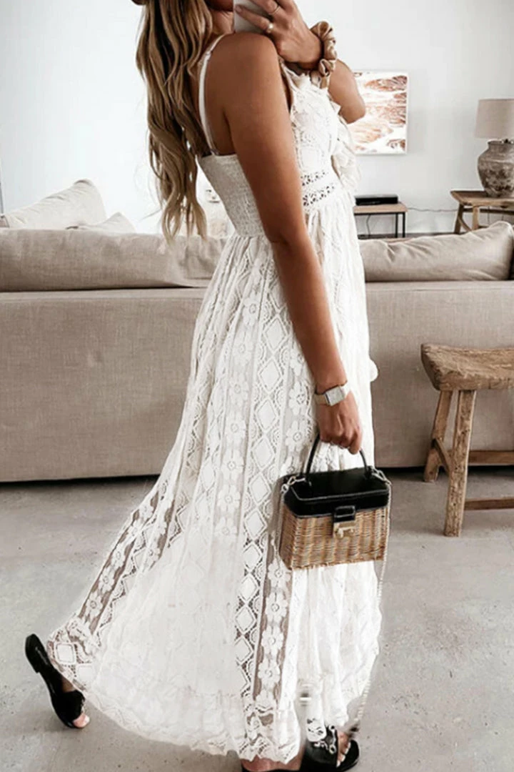 You can not miss this Ariya V-neck Lace Up Slip Dress in summer. Our dress features adjustable straps and smocking design. It is perfect for a vacation.