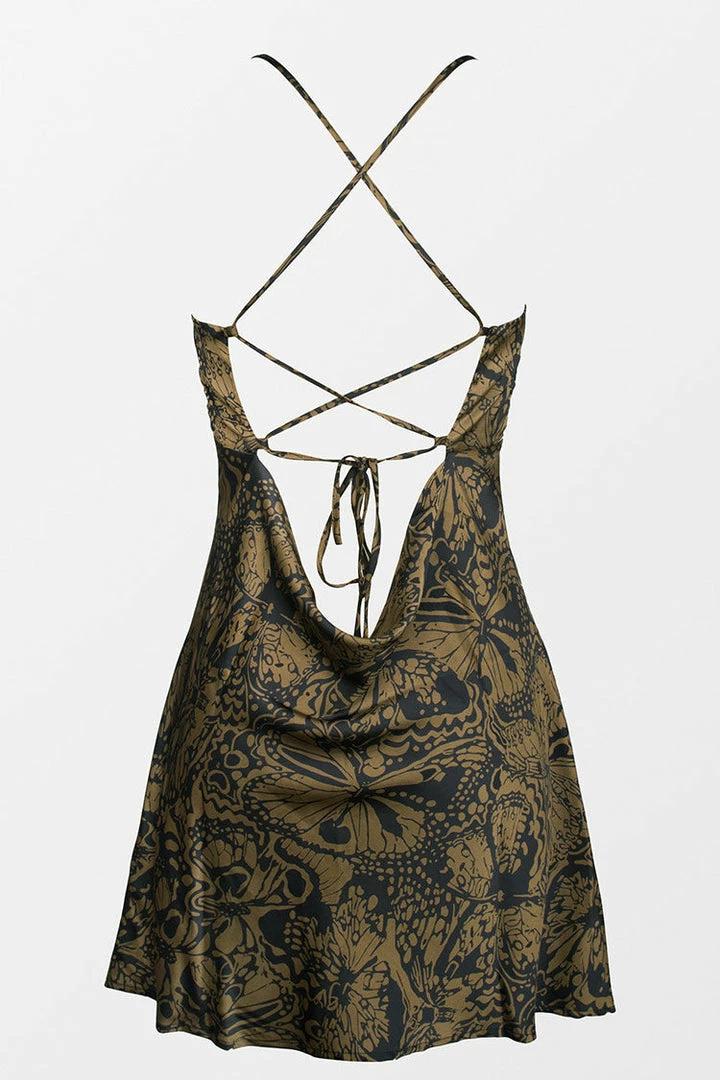 The overall sexy style of this Mariela Strap Lace Up Slip Dress, the dark color and its animal print complement each other, you will become a sexy stunner wearing it.