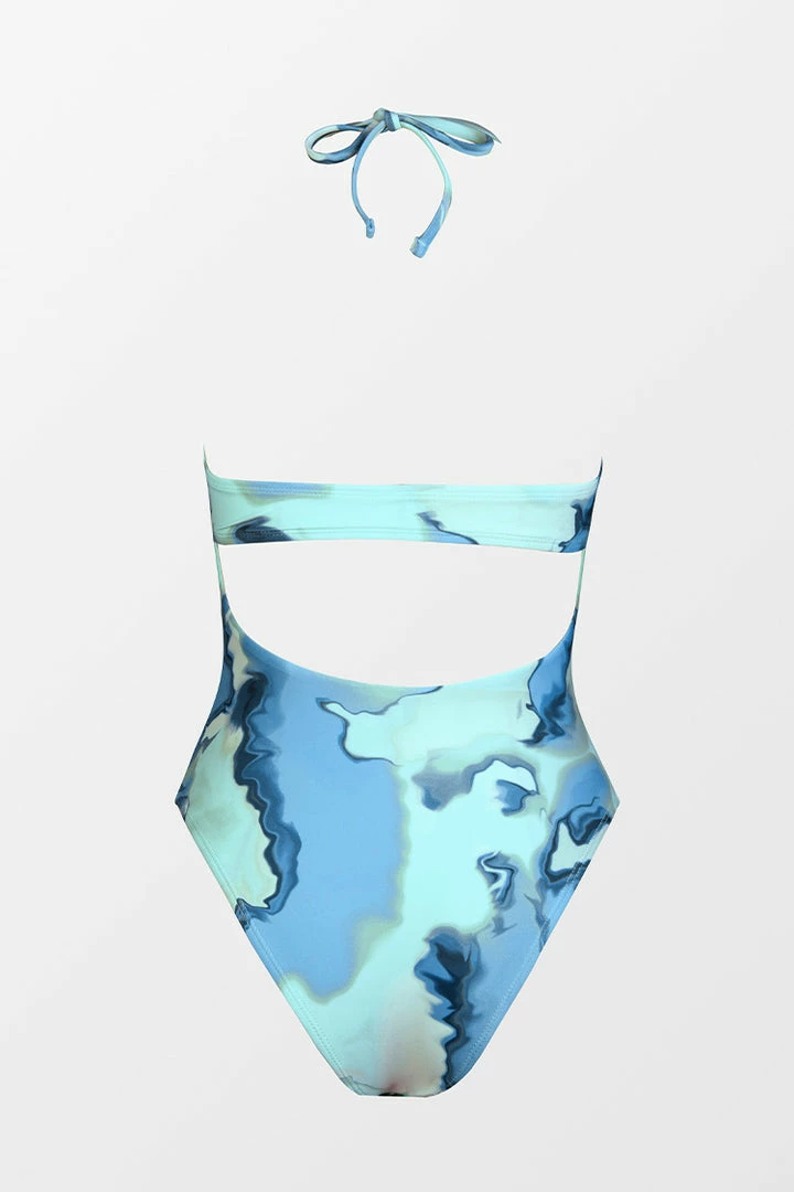 Front and back cutouts and the cheeky bum coverage add a sexy, playful touch to this colorful one piece swimsuit. The removable strap lets you customize your look with added support.