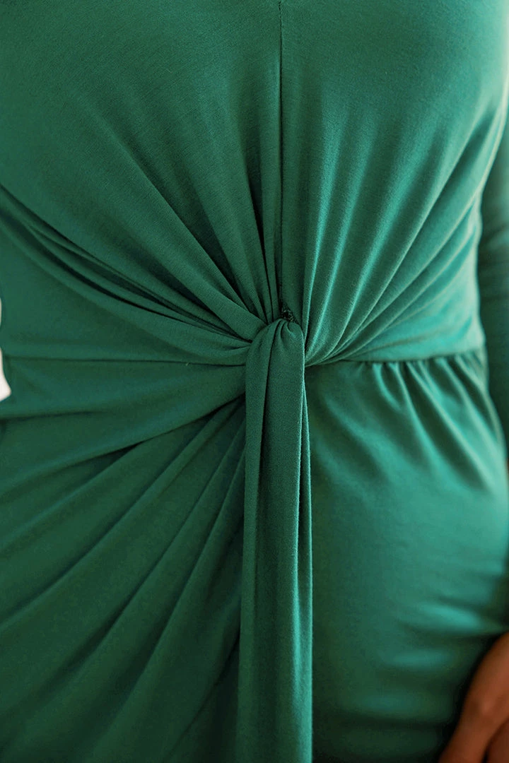 Make an entrance in this dazzling maxi dress featuring a plunging V-neckline, twist-front design, long sleeves, and a high leg slit.Β