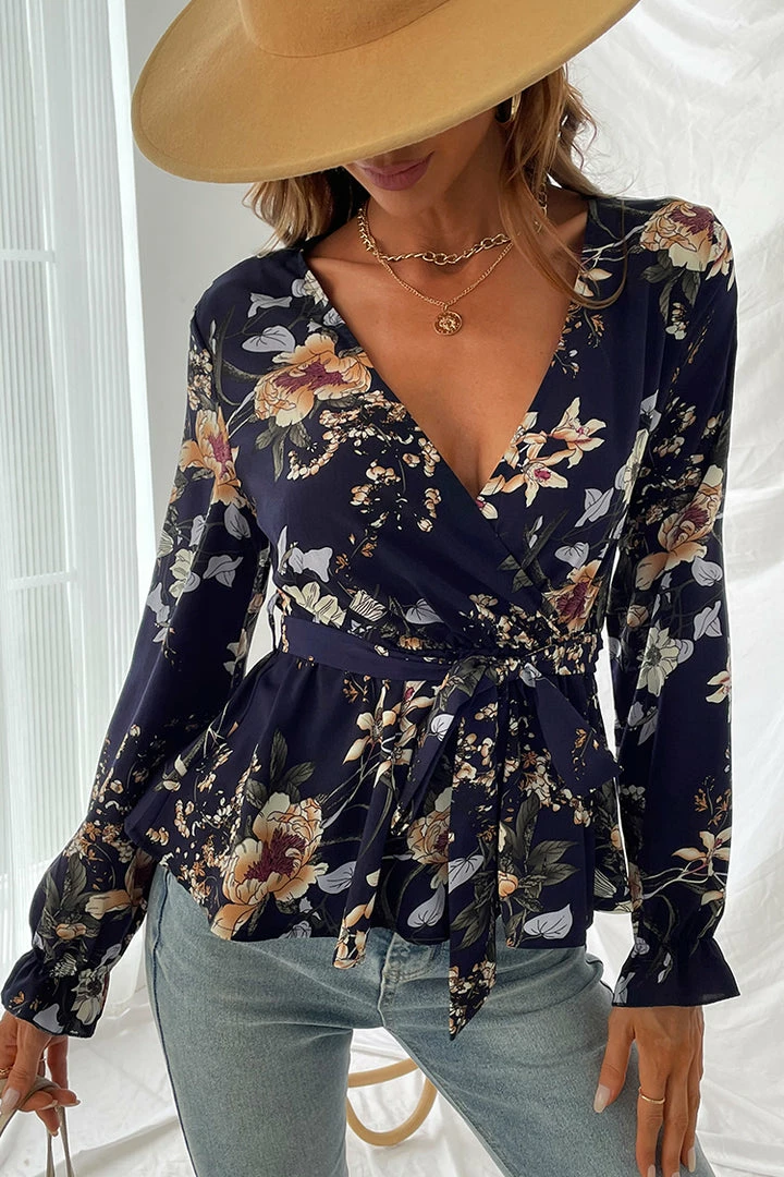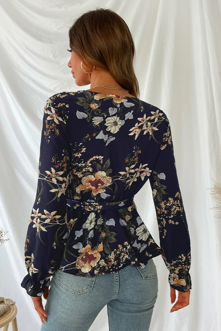 Perfect to wear for the new season, this retro-inspired floral print top is everything you need to elevate your closet. Featuring a floral print, surplice neckline, mock wrap design, self-tie sash belt, flounce hem, and long peasant sleeves.