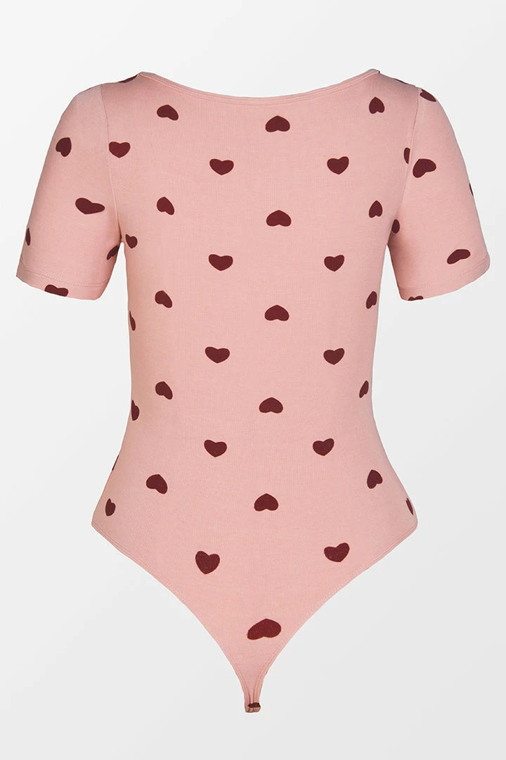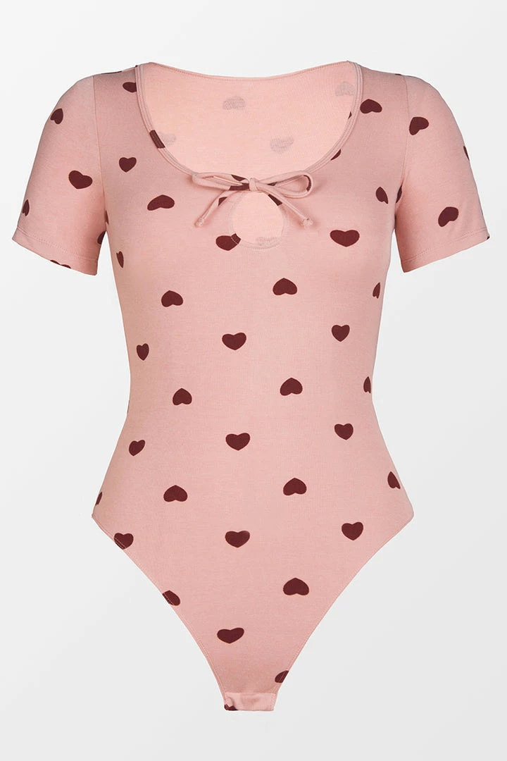 This Laurel Scoop Tie Polka Dot Bodysuit features a girly design with heart print and the cute bodysuit makes you look youthful, you must be the cutest in the crowd.