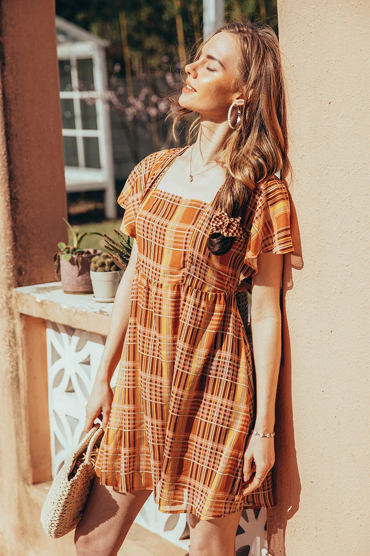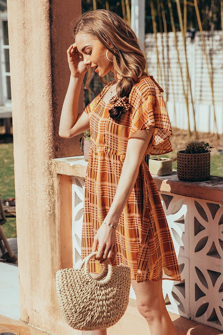 This Londyn Square Neck Gingham A-Shape Dress is very elegant. It uses hollow back and dolman sleeve design, which can well show your beautiful back and have a retro feeling as a whole.
