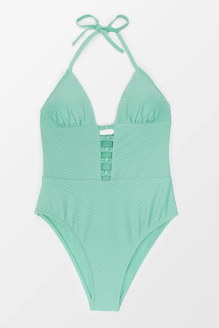 Feel your best in the Melinda Hollow Out Halter One Piece Swimsuit. This figure-flattering bathing suit has feminine hollow out details you’ll love. Self-tie halter neck ensure the perfect fit.