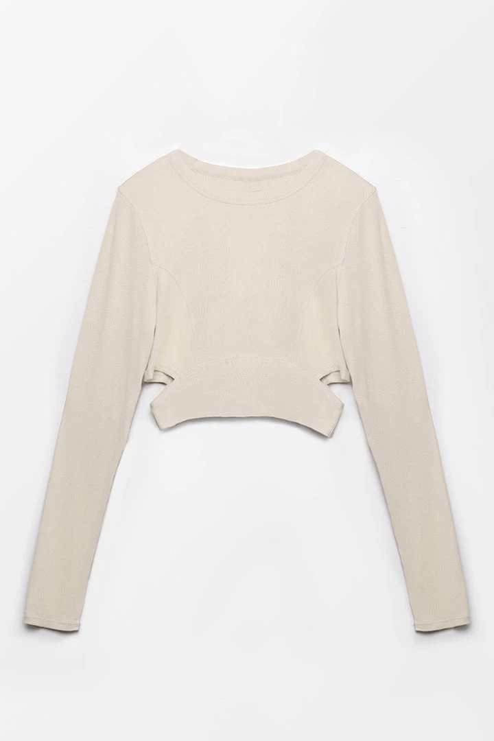 Whether worn alone or layered, the Metropolis Side Cutout Crop Sweatshirt is seriously sporty and sexy! This crop top starts with a stretchy, ribbed knit construction that forms a high round neckline, long sleeves, and a fitted bodice perfect for any outfit!