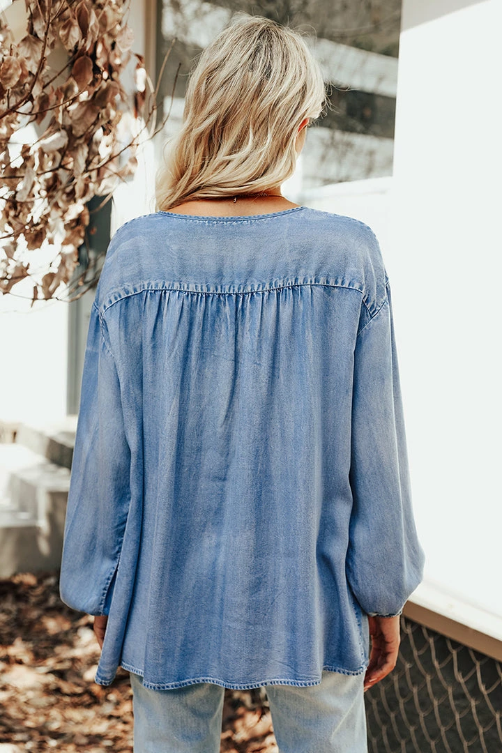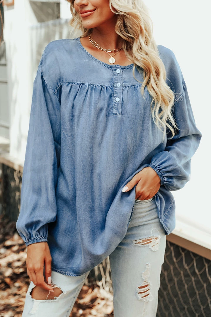 We are loving this shirt for the new season babe! Featuring buttons on the collar, ruching detailing, and long bubble sleeves.