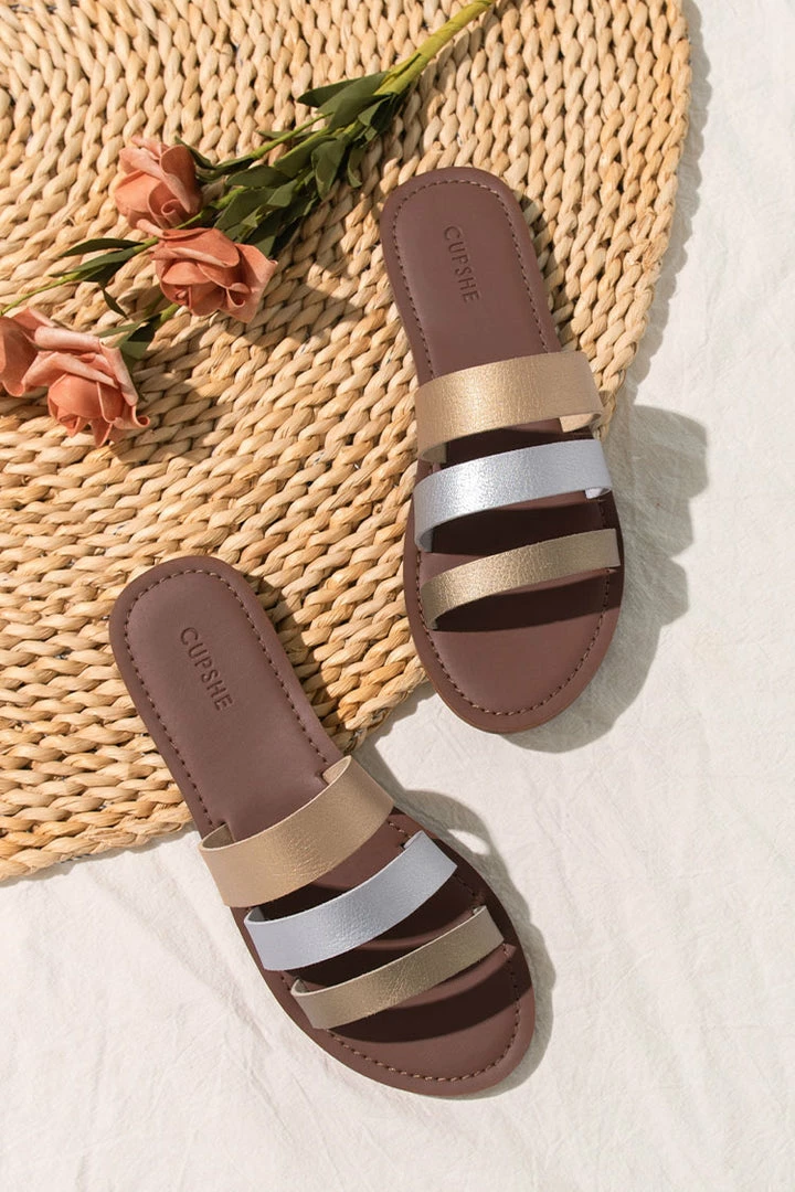 Our Olympia Three Strap Slides are the perfect sandals for a summer wardrobe staple; Easy slip-on design with open toe and strapless back;ย Comfy sole with no heel for easy wear;ย Available in multiple patterns and colors to suit your style.
