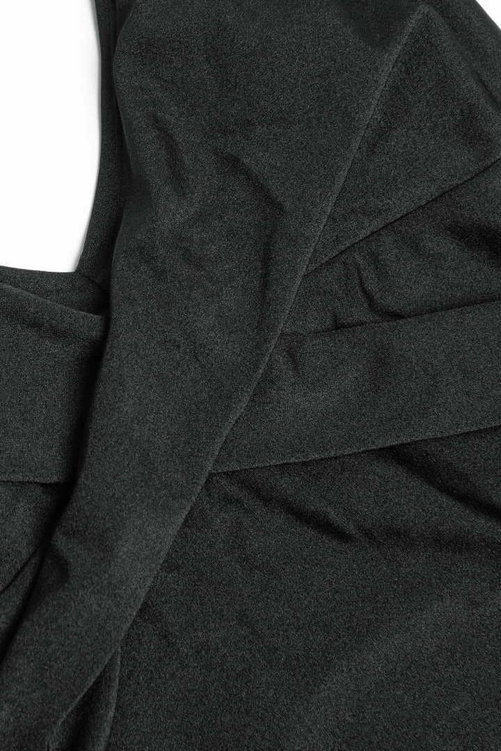 Sleek and sexy, this black one-piece swimsuit is everything you need for your next beach day! Featuring a halter neckline, wrap front, back self-tie closures, and classic bum coverage.