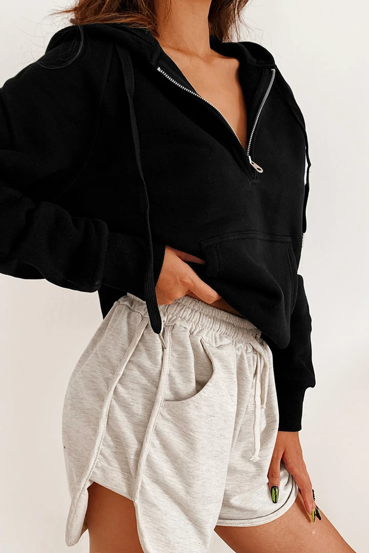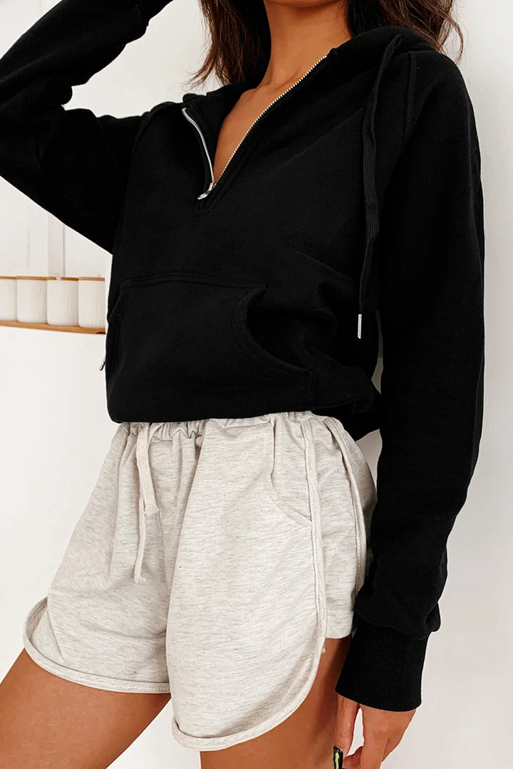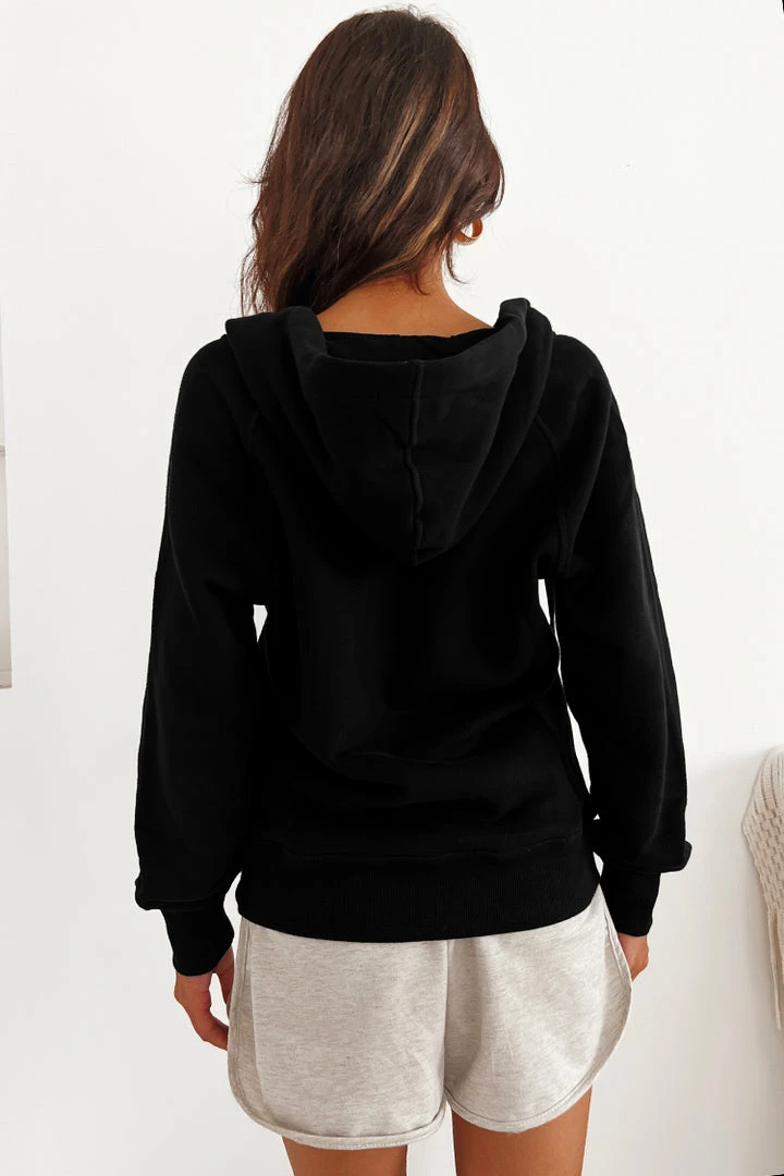 The Snow Kiss BlackΒ Long Sleeve Hoodie adds a modern touch with its half zip detailing. We know these classic long sleeves and a drawstring hoodie will keep you all kinds of comfortable this season.
