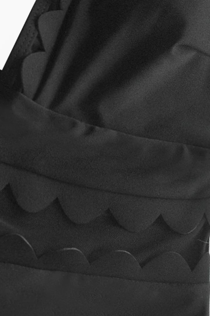 Make the beach your own playground in this Solid Black V-Neck One Piece Swimsuit. Deep v-neck design brings more flattering silhouette for this swimsuit. Padded cups for added support.