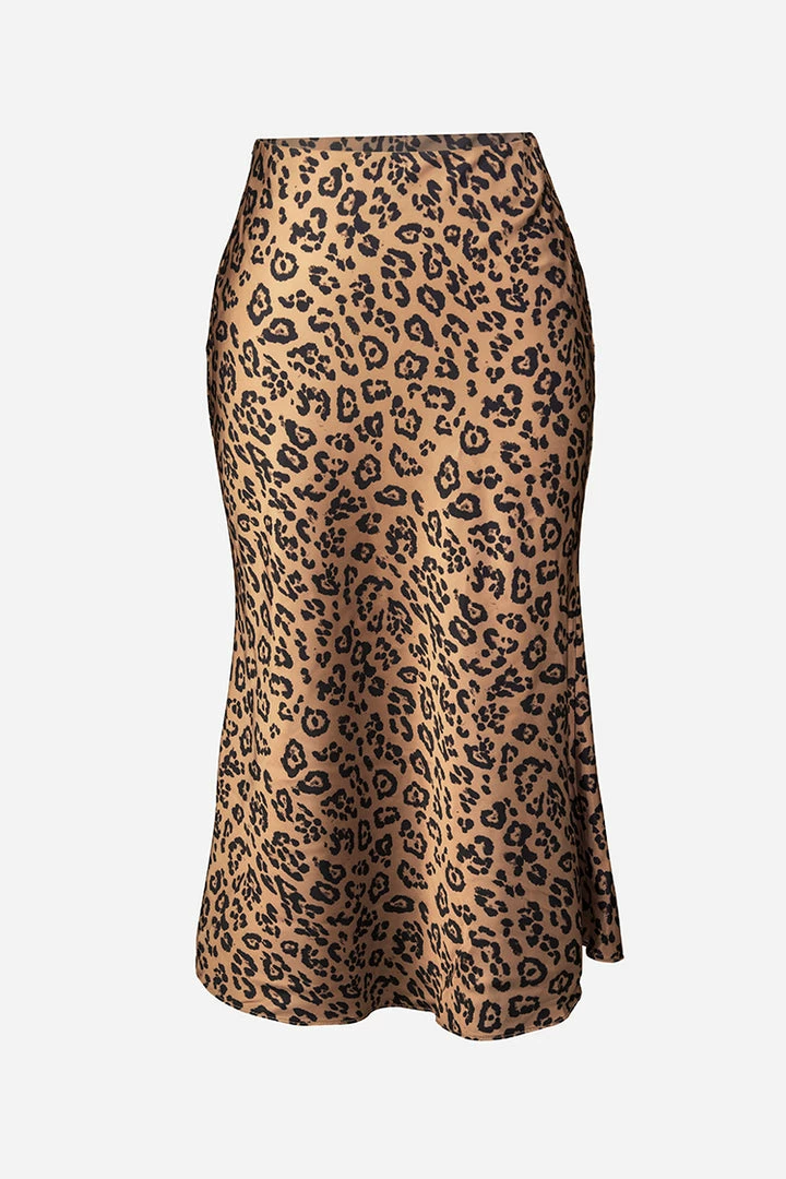 Don’t just follow the crowd, lead the way to style with this satin midi skirt featuring an allover leopard print and high-rise waist. Pair with a bodysuit and open-toe heels to create a sexy, fun look!
