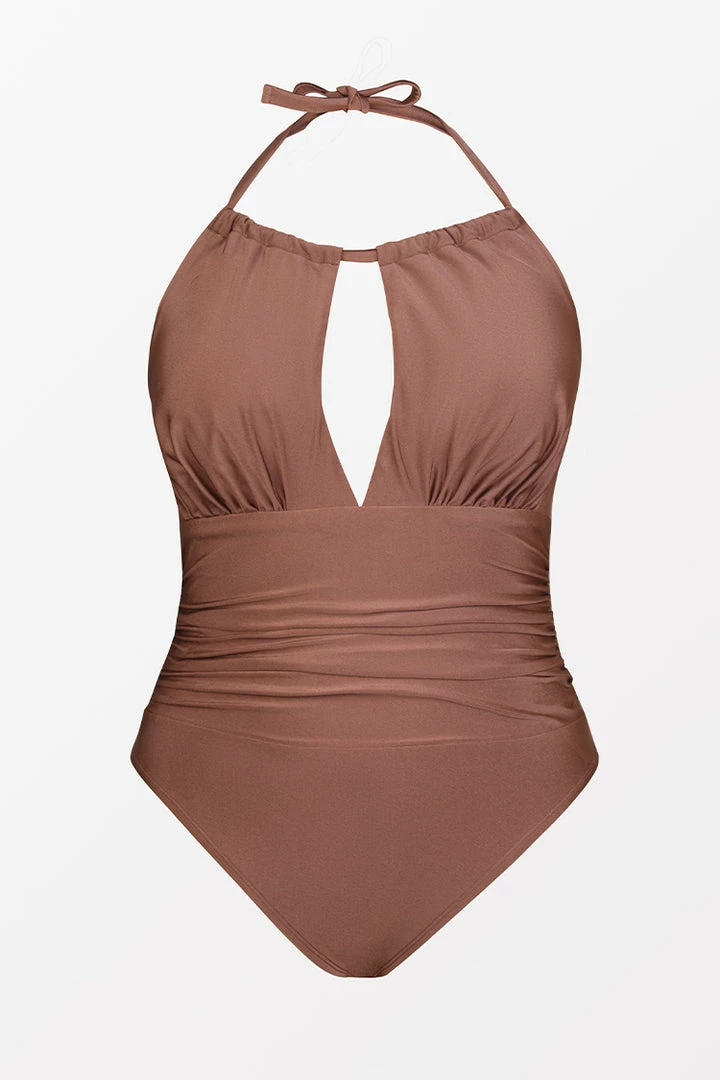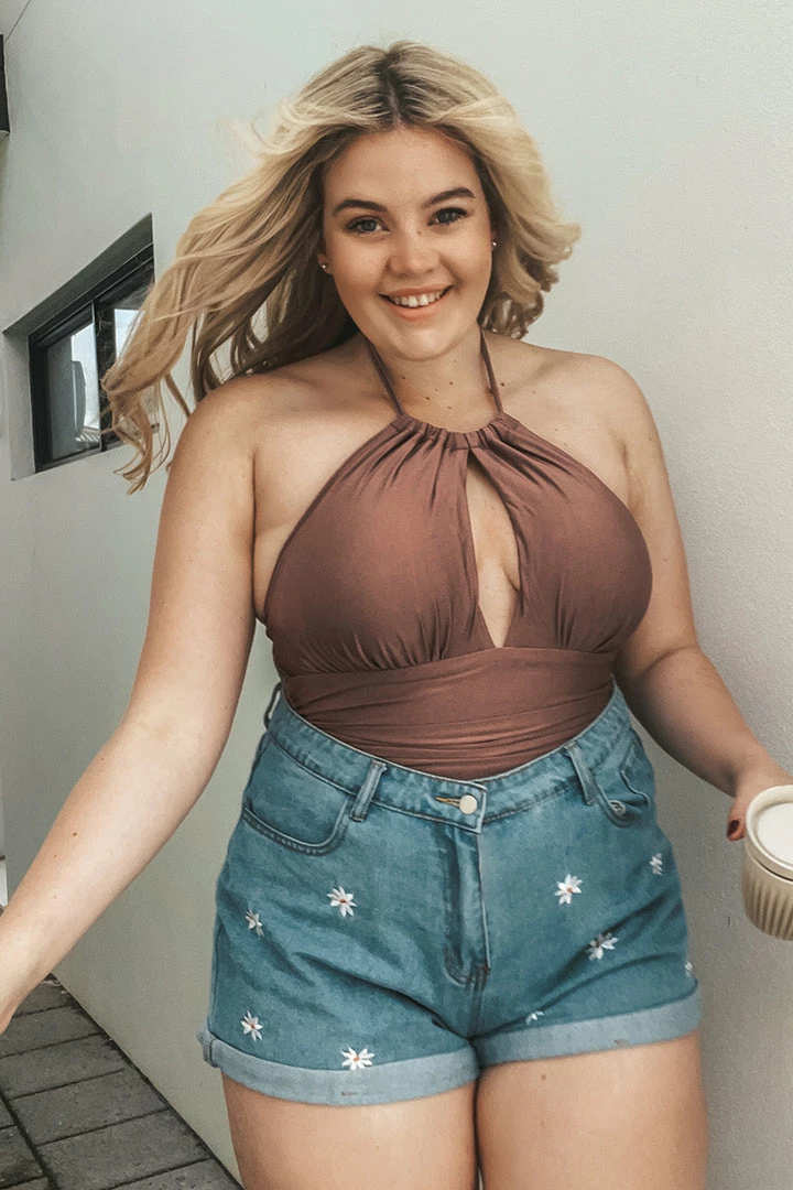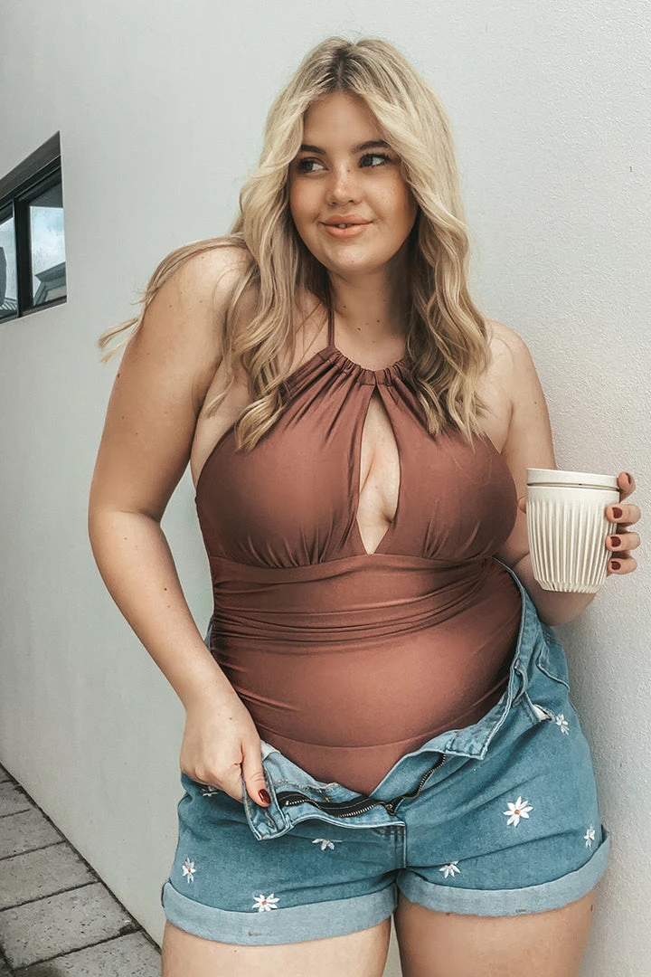 Stand out in our Strawberry Fields Forever High Neck Ruching Plus Size One Piece Swimsuit! Features with adjustable straps and cut out for your comfort.