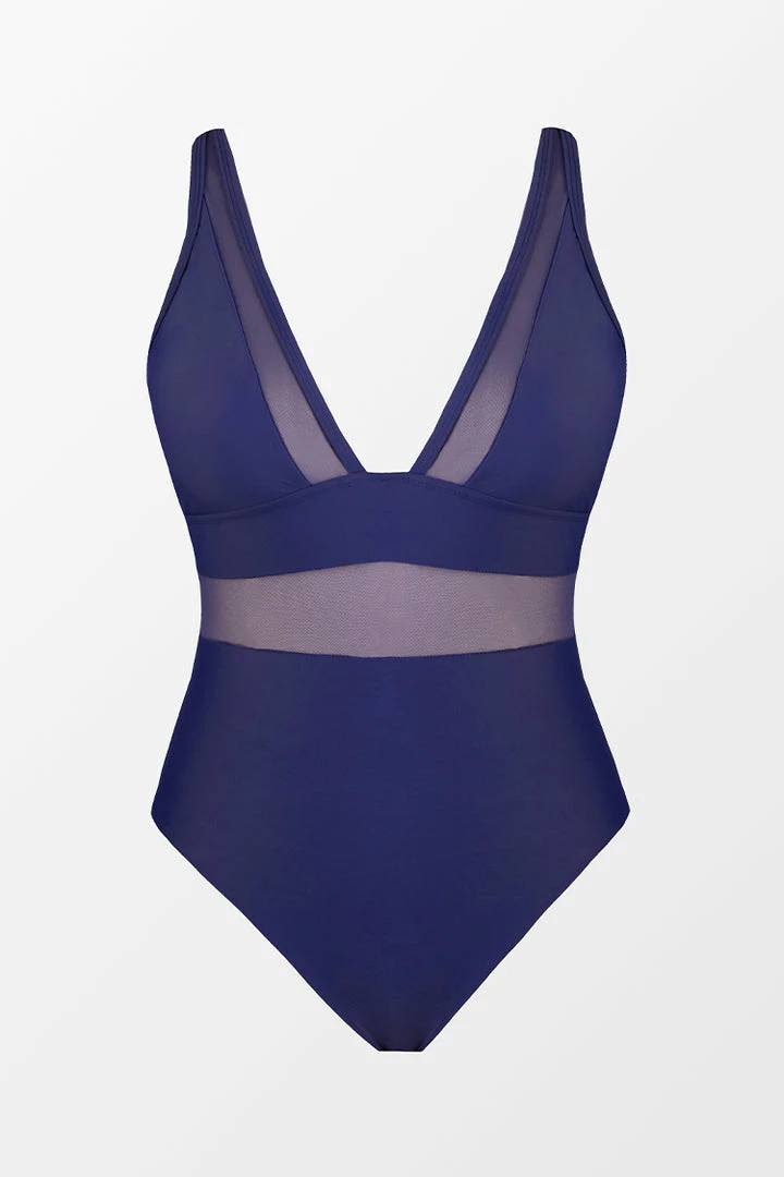 Upgrade your vacation wardrobe in this one-piece swimsuit! Featuring a plunging V-neckline, scoop-cut back, mesh panel, adjustable shoulder straps, and a classic bum coverage.