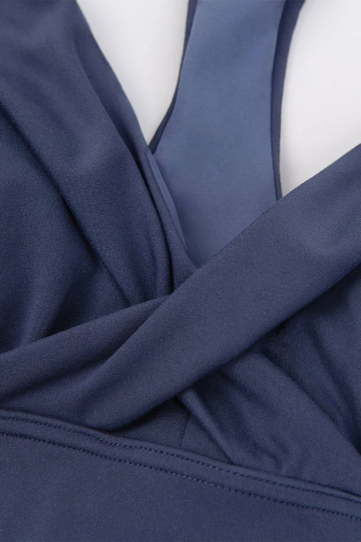 Get ready to stretch it out in style with the Tempest Twist Sports Bra! Lightweight and stretchy nylon, with a front twist and a back cut out, shapes this medium impact sports bras that falls from wide straps into a V-neckline and fitted design with a banded hem.