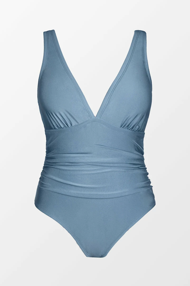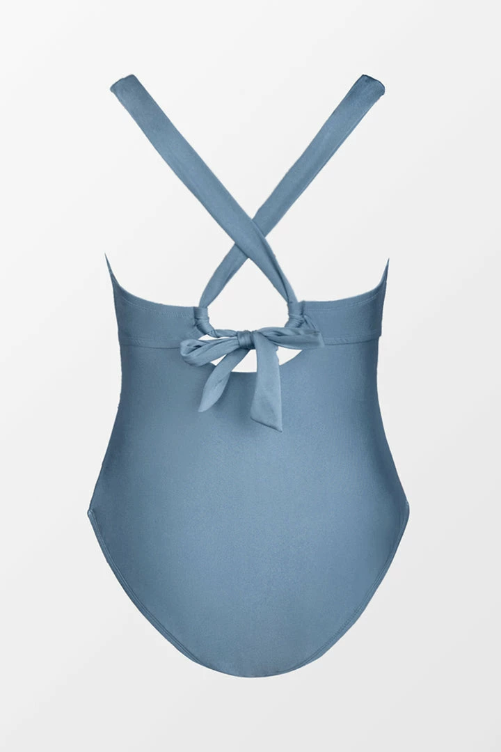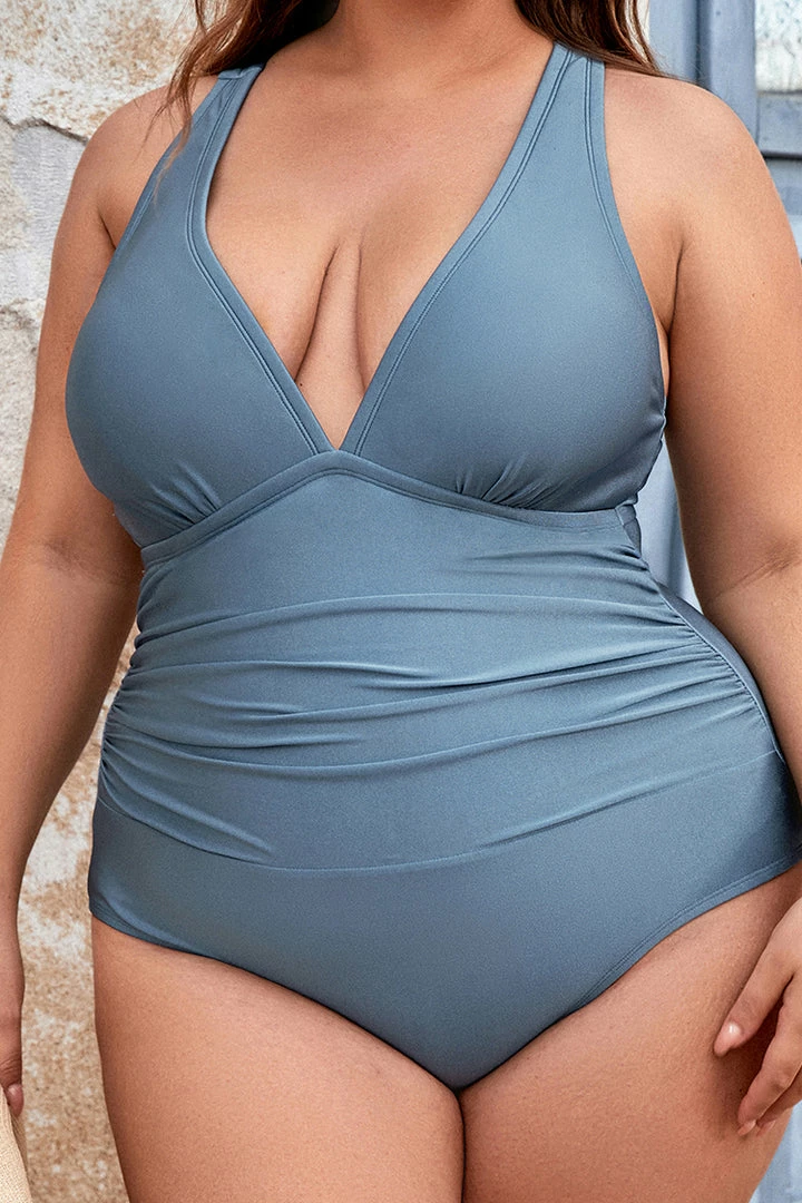 Va va voom! This one-piece swimsuit hugs your curves in all the right places and makes you look like an absolute knock out. With its plunging neckline, ruched sides, and cross tie back, youโll be the envy of your besties.